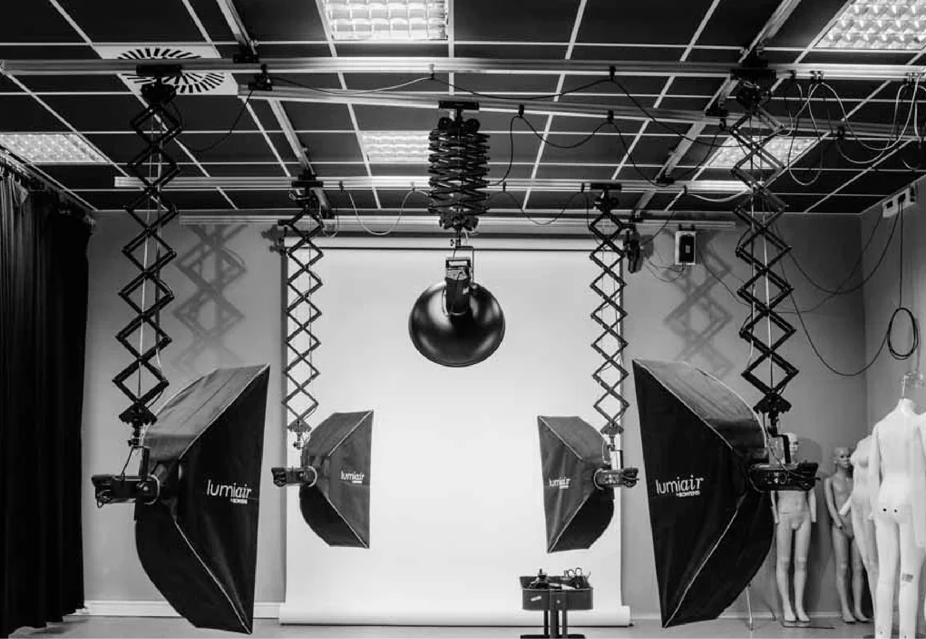 Say goodbye to cluttered floors and limited shooting spaces. Our system increases your shooting space and transforms your studio into an efficient working environment by eliminating the need for cumbersome stands and minimising ground clutter such as trailing mains cables.